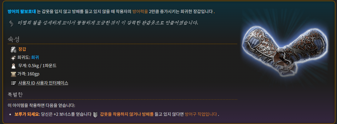 테이의 사령술 있는 지하실에 노방패 노갑옷을 위한 방어도 장갑이 있다 (두손무기 드는 바바리안이 써도 좋음)